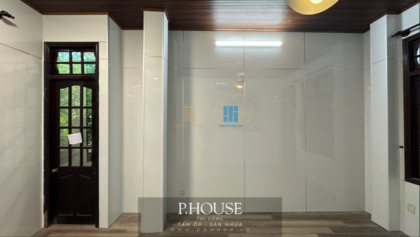 Ngoài phần tường, trần nhà được Phú An cách điệu bằng cách thi công tấm ốp lam sóng nhựa cực kì tinh tế. Với vật liệu nhựa khi thi công trần sẽ giảm thiểu được trọng lượng tác động lên kết cấu, từ đó tăng độ bền cho công trình.