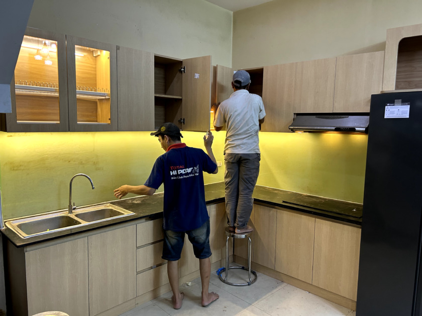 👉🏻 Đội ngũ thi công sẽ tiến hành khảo sát hiện trạng không gian bếp để lên kế hoạch thi công, đo đạc chính xác các kích thước và đưa ra thiết kế tối ưu nhất.