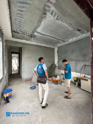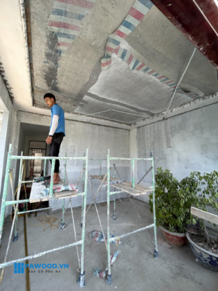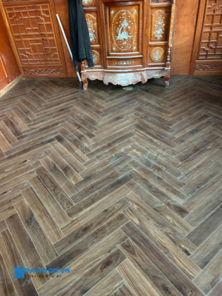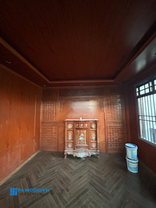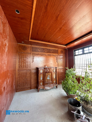 Thông tin công trình thiết kế và thi công phòng thờ cao cấp cùng sàn gỗ ThaiGreen xương cá: