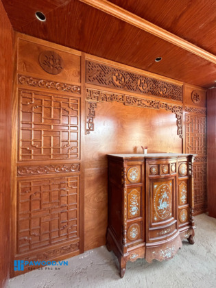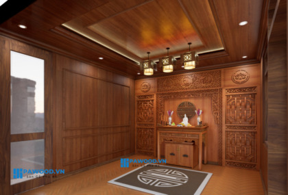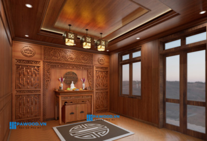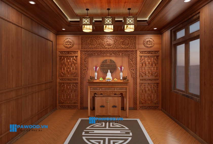 Một số hình ảnh của công trình thiết kế và thi công phòng thờ cao cấp cùng sàn gỗ ThaiGreen xương cá: