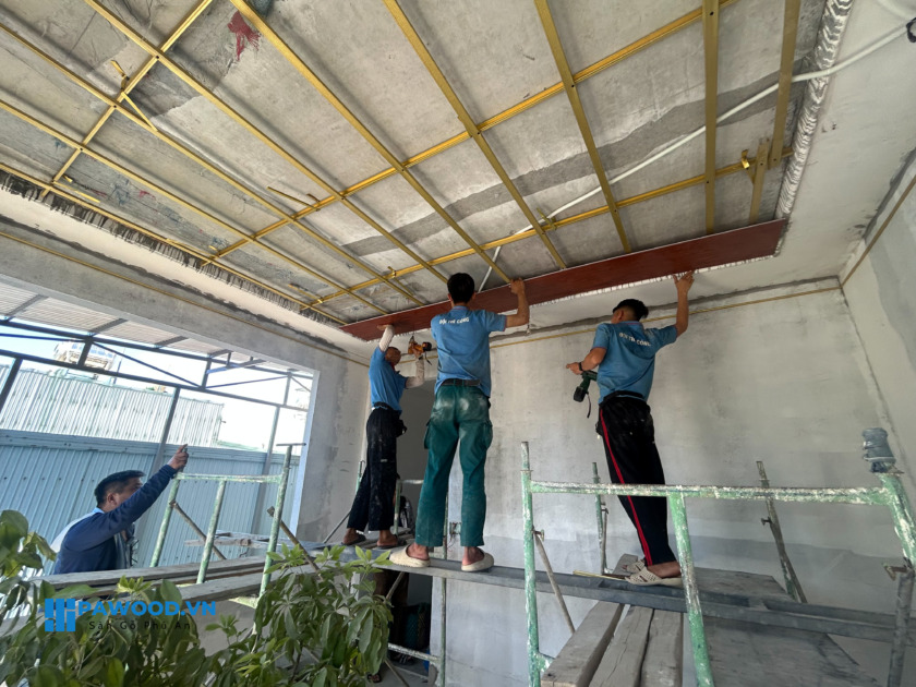 3. Ứng dụng sản phẩm: tấm ốp Minh Phương, sàn gỗ ThaiGreen – Thiết kế và thi công phòng thờ cao cấp.