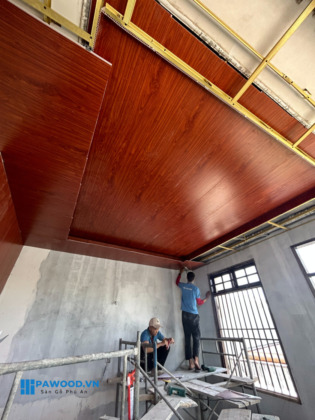 4. Vật liệu: sàn gỗ công nghiệp 12mm xương cá, tấm ốp nhựa