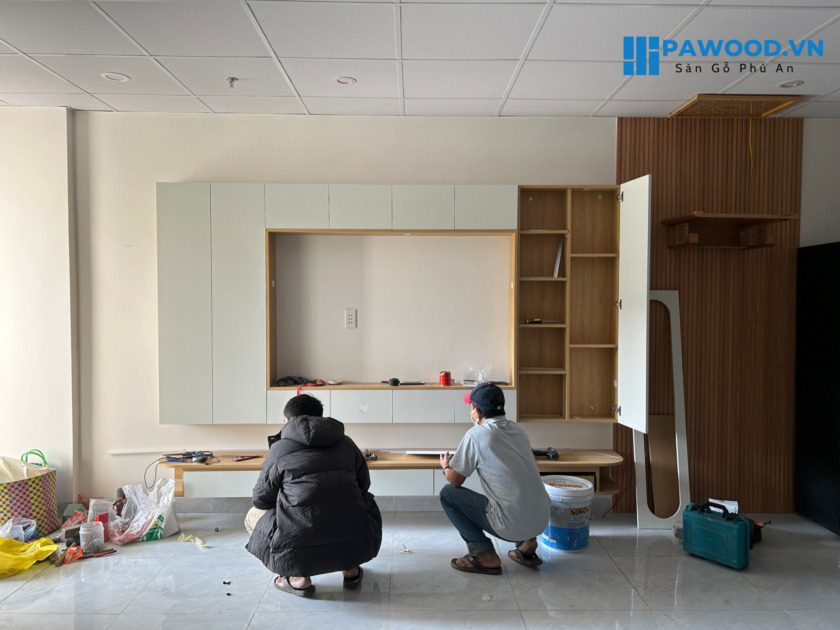 Thông tin công trình thi công vách TV cho chung cư, căn hộ