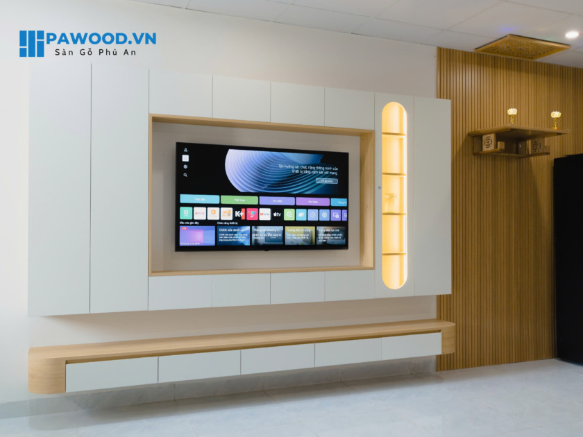 👉🏻 Vách TV cho chung cư, căn hộ theo phong cách đơn giản, tiện nghi