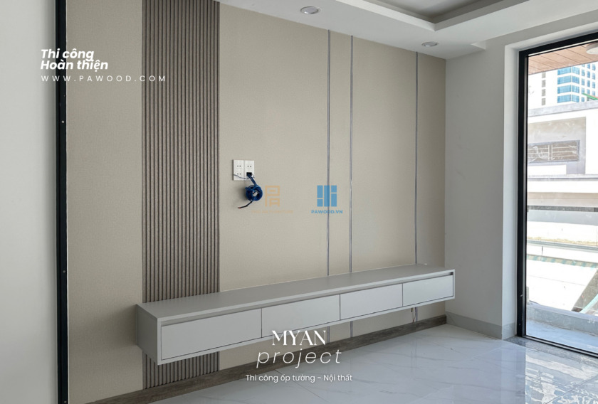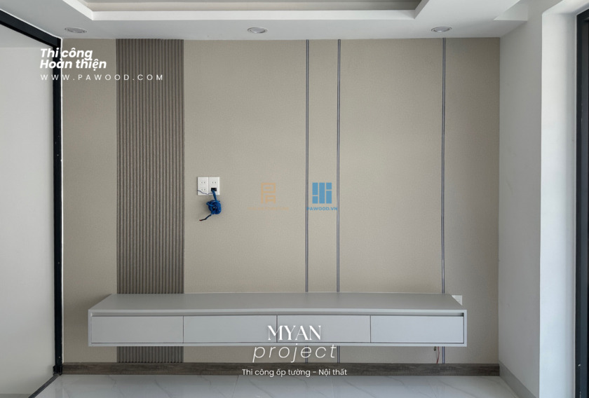 Hình ảnh của công trình thi công vách TV hiện đại: