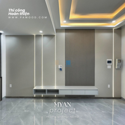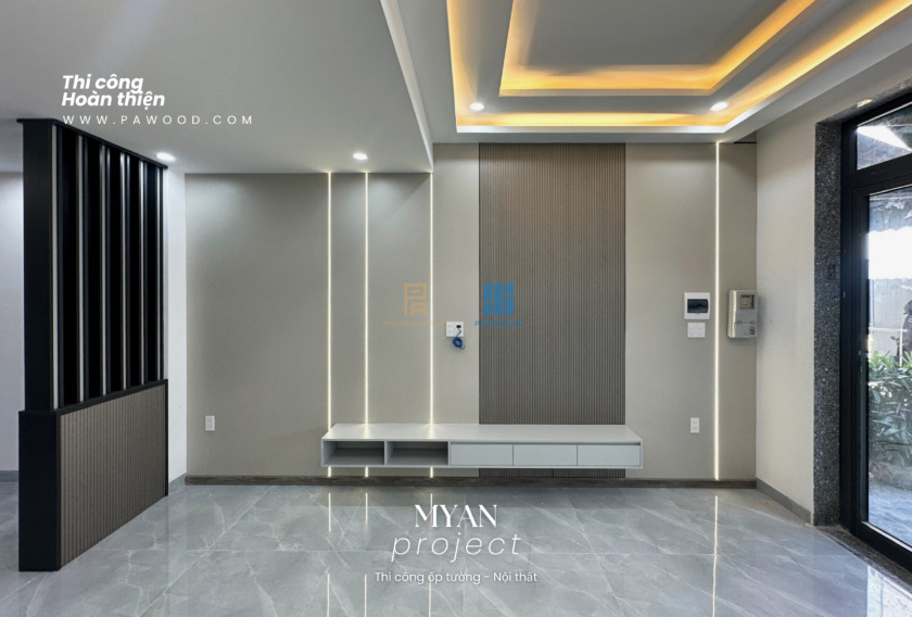 Hình ảnh của công trình thi công vách TV hiện đại: